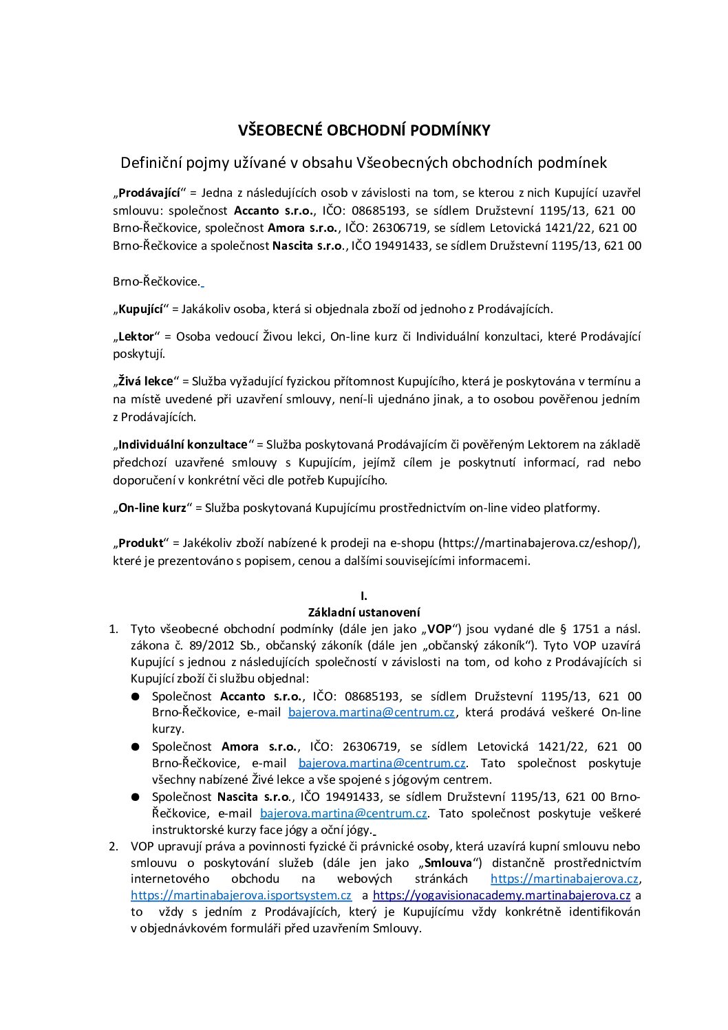 Všeobecné obchodní podmínky platné od 1. 11.2025
