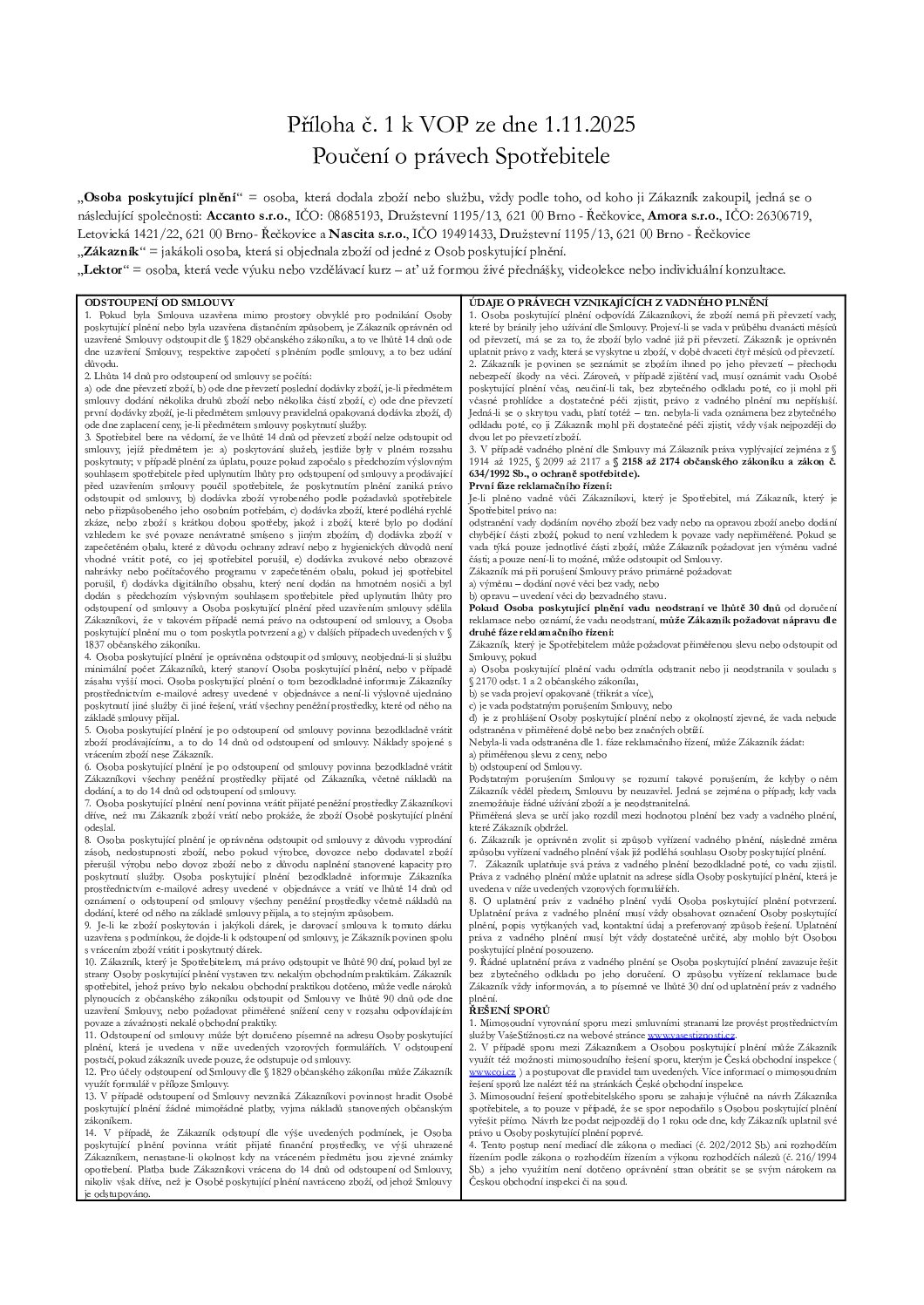 příloha č. 2 k VOP ze dne 1. 11. 2025