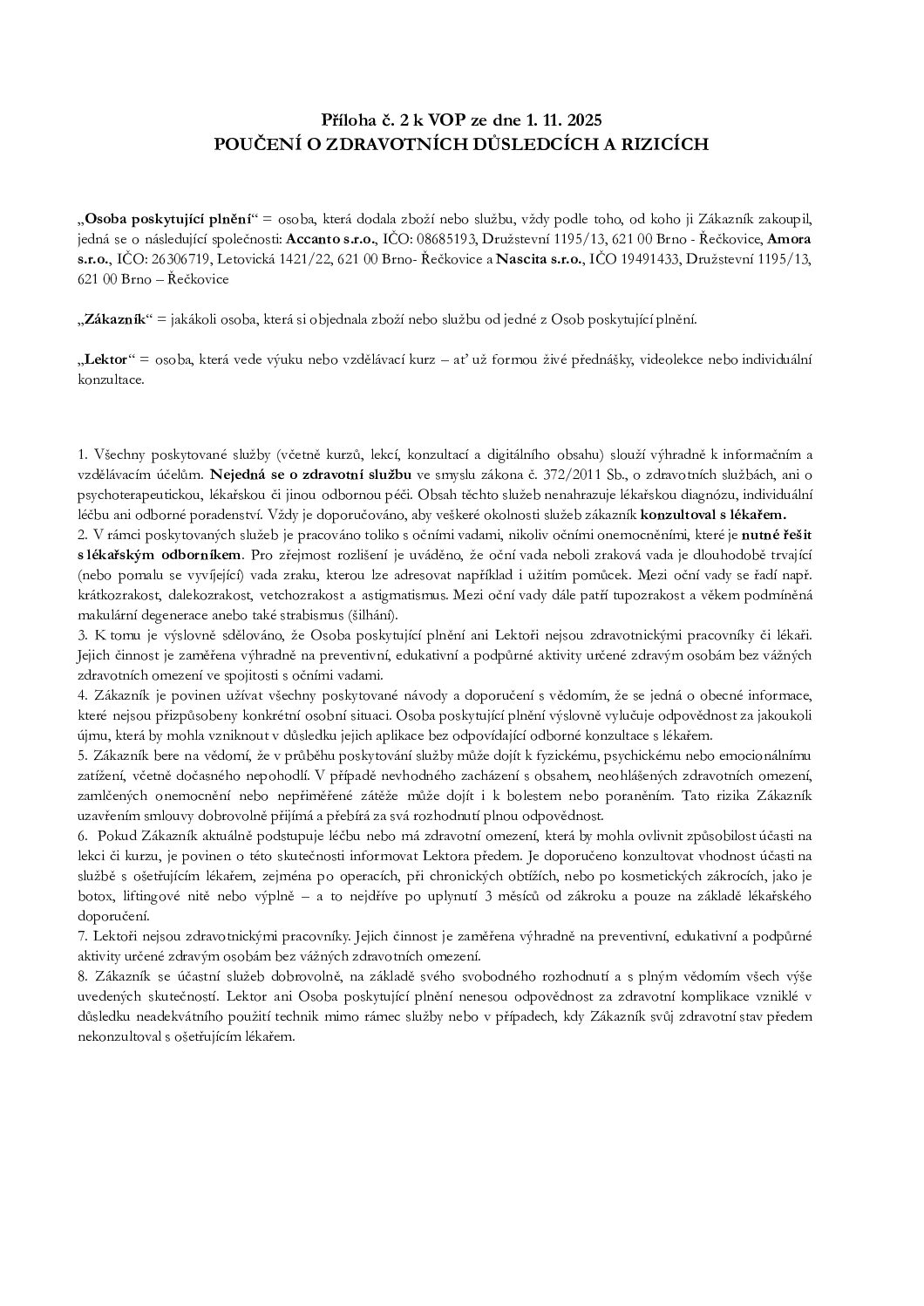 PŘÍLOHA Č. 2 K VOP ZE DNE 1. 11. 2025 POUČENÍ O ZDRAVOTNÍCH DŮSLEDCÍCH A RIZICÍCH ke stažení